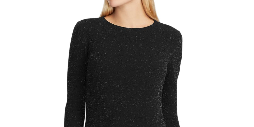 Ralph Lauren Women's Shimmering Long Sleeve Jewel Neck Knee Length Body Con Evening Dress Black Size 0