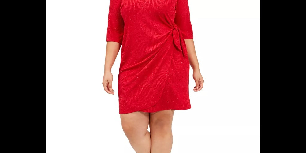Robbie Bee Women's Plus Size Glitter Knit Sarong Dress Red Size 1X
