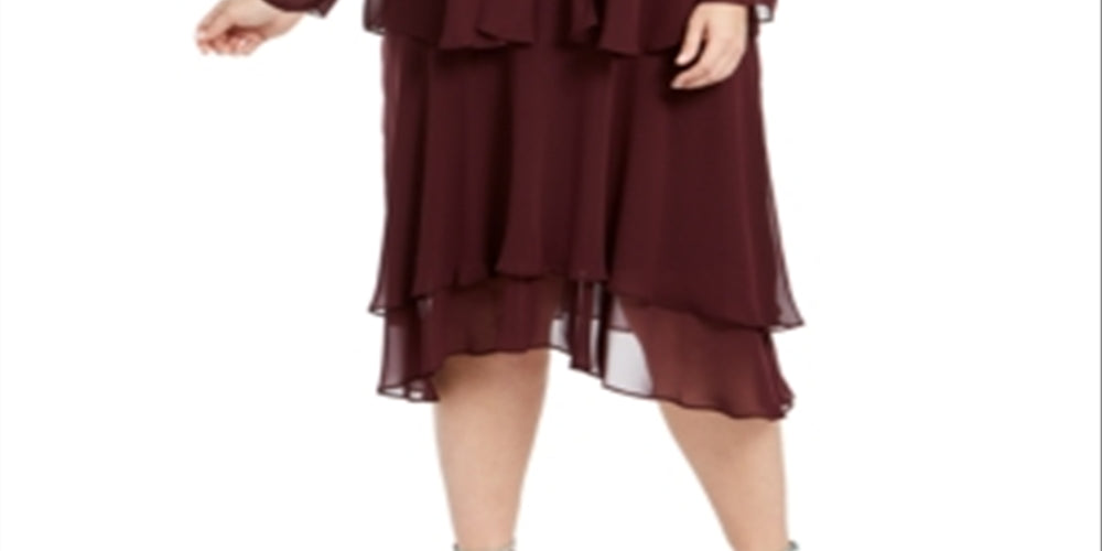 Sl Fashions Women's Embellished Dress & Jacket Burgundy Size 16W