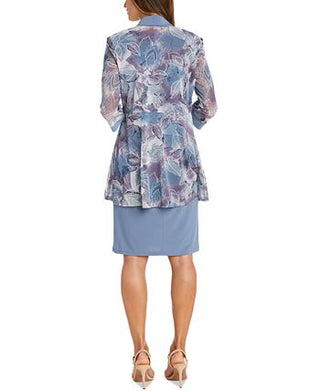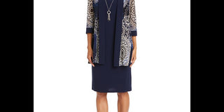 R & M Richards Women's 2 Pc Printed Jacket & Necklace Dress Set Blue Size 8Petite