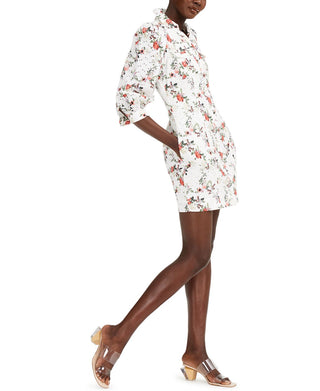 INC International Concepts Women's Eyelet Floral Mini Dress White Size 6