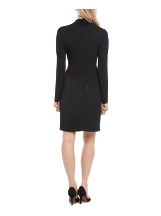 Karen Kane Women's Glitter Long Sleeve Queen Anne Neckline Above The Knee Sheath Evening Dress Black Size X-Small