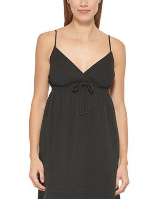 DKNY Women's V Neck Front Tie Maxi Dress Cover Up Swimsuit Black Size X-Large