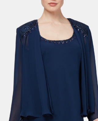 SL Fashions Women's Embellished Tiered Hem Dress & Jacket Blue Size 8