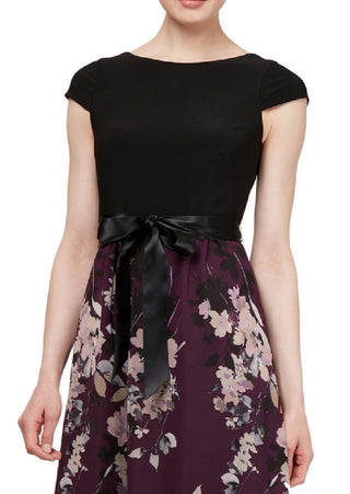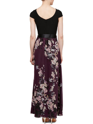 SL Fashions Women's Cap Sleeve Floral Skirt Gown Purple Size 16