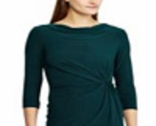 Ralph Lauren Women's Twist Front 3/4 Sleeve Cowl Neck Above The Knee Cocktail Dress Green Size 12 Petite
