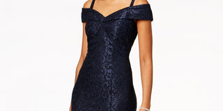 R & M Richards Women's Off The Shoulder Lace Gown Blue Size 16