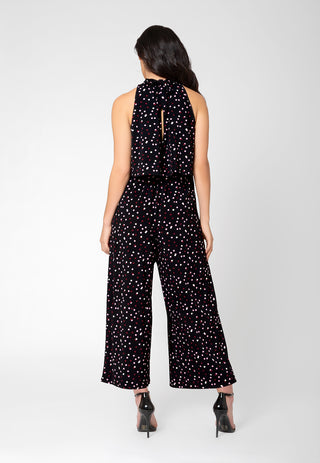 Leota Women's Skyler Polka Dot Halter Neck Jumpsuit Black Size 1X