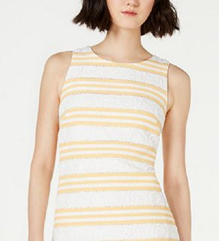 Vince Camuto Women's Metallic Stripe Brocade Shift Dress Yellow Size 8