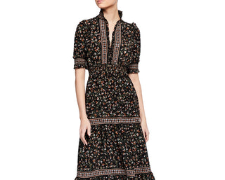 Max Studio Women's Floral Print Smocked Maxi Dress Black Size Large