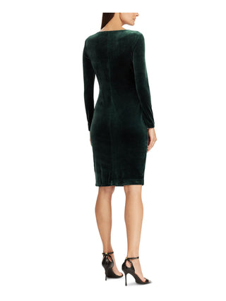 Ralph Lauren Women's Gathered Long Sleeve V Neck Above the Knee Party Body Con Dress Green Size 8 Petite