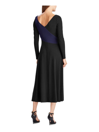 Ralph Lauren Women's Long Sleeve Tea Length Trapeze Formal Dress Black Size 18