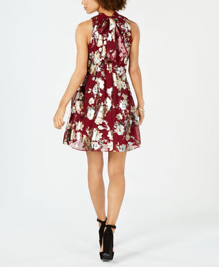 Robbie Bee Women's Floral Metallic Printed Sleeveless Mini Trapeze Dress Red Size 6 Petite