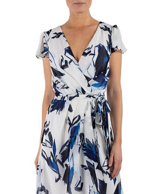 Donna Ricco Women's Floral Flutter Sleeve Chiffon Midi Dress Blue Size 6