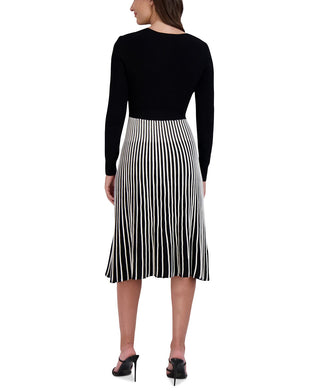 Robbie Bee Women's Two Tone Belted Sweater Dress Black Size Small