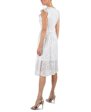 Julia Jordan Women's Zippered Ruffled Embroidered Flutter Sleeve Square Neck Dress White Size 12