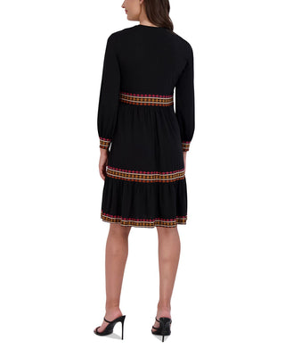 Robbie Bee Women's Contrast Trimmed Tiered Jersey Dress Black Size Petite Large