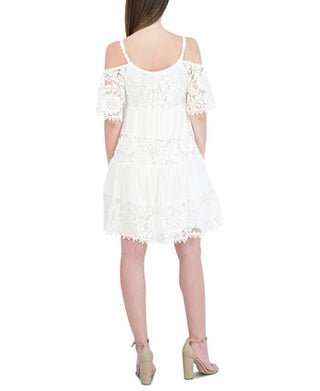 Robbie Bee Women's Cold Shoulder Gauze Lace Shift Dress White Size Petite Large