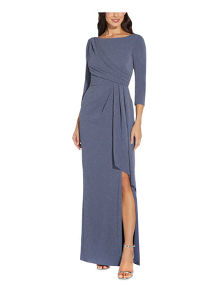 Adrianna Papell Women's Gathered Waist Metallic Threaded Gown Blue Size 12