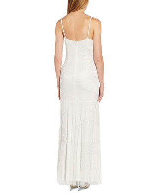 Adrianna Papell Women's Embellished V Neck Gown White Size 0