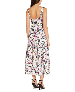 Aidan By Aidan Mattox Women's Satin Floral Print Midi Dress White Size 6