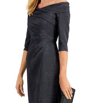 Adrianna Papell Women's Off The Shoulder Gown Gray Size 6