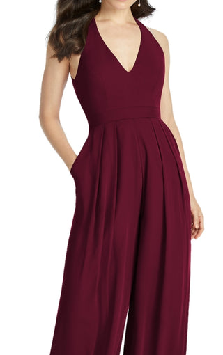 Dessy Collection Women's Arielle V Neck Lux Chiffon Jumpsuit Red Size 8