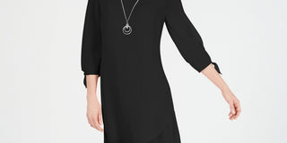 JM Collection Women's Petite Tie-Sleeve Necklace Dress Black Size Petite