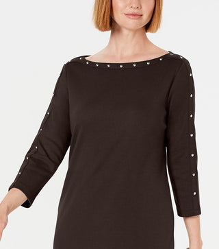 Karen Scott Women's Petite Boat-Neck Studded Dress Brown Size Petite