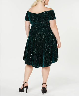 Morgan & Company Women's Trendy Plus Velvet Off The Shoulder Dress Green Size 18W