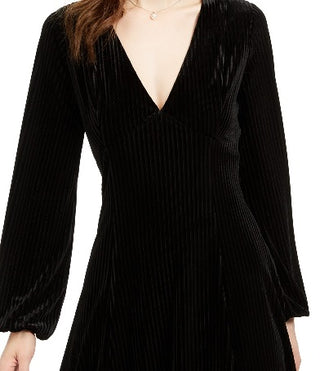 19 Cooper Women's Long-Sleeve Velvet-Stripe Dress Black Size Extra Large