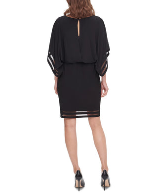Jessica Howard Women's Petite Illusion-Detail Blouson Dress Black Size 6 P