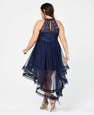Say Yes To The Prom Women's Trendy Plus Size Embellished High-Low Dress Navy Size 18