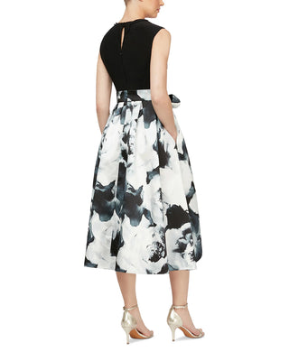 SL Fashions Women's Printed High Low Fit & Flare Dress Black Size 10