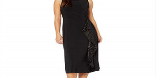 Jessica Howard Women's Sequined Lace 3/4 Sleeve Jewel Neck Short Wear To Work Sheath Dress Black Size 14 P