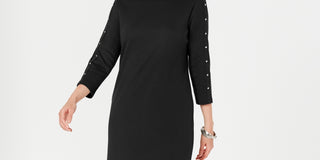Karen Scott Women's Boat Neck Studded Dress Black Size PL
