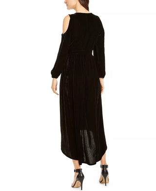 NY CollectionWomen's Velvet Cold Shoulder Tie Waist Dress Black Size -PXL