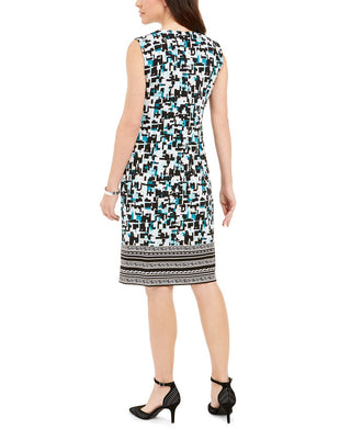 JM Collection Women's Printed Beaded Sleeveless Dress Black Size -S