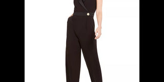 Vince Camuto Women's Embellished V Neck Straight Leg Jumpsuit Black Size 14