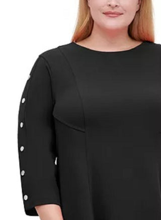 Tommy Hilfiger Women's Plus Button Sleeve Fit & Flare Dress Black Size 20W