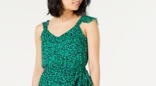 INC International Concepts Women's Animal Print Ruffled Dress Emerald Leopard Print Green Size 18