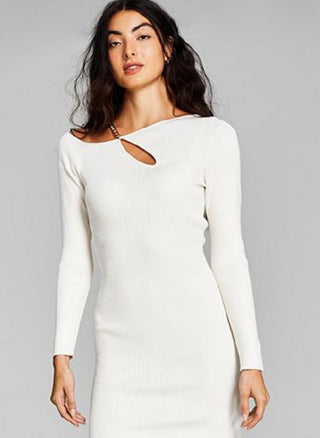 And Now This Women's Chain Cutout Long Sleeve Sweater Dress White Size Small