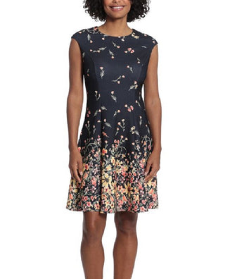 London Times Women's Printed Fit & Flare Dress Black Size 12Petite