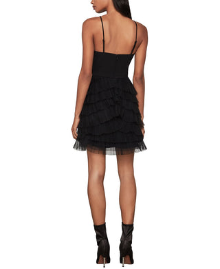 BCBGMAXAZRIA Women's Tulle Tiered Sleeveless Mini Dress Black Size 2
