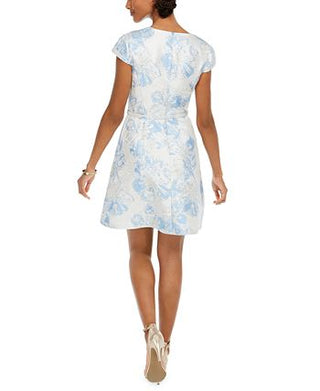 Vince Camuto Women's Belted Jacquard Dress Blue Size 8