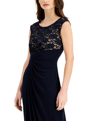 Connected Women's Embellished Cap Sleeve Gathered Waist Gown Black Size 8 Petite