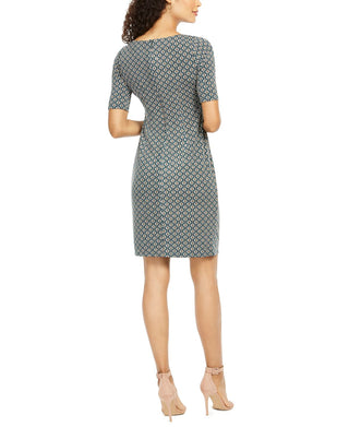 Jessica Howard Women's Printed Embellished Sheath Dress Green Size 4Petite