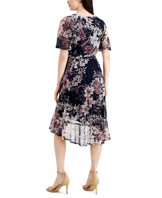 Connected Women's Printed Chiffon Faux Wrap Dress Blue Size 10Petite