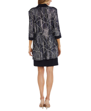 R & M Richards Women's Necklace Printed Jacket Dress Blue Size 14