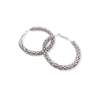 Allyanna Gifts - Women's Rhodium Beaded Twisted Round Hoop Earrings